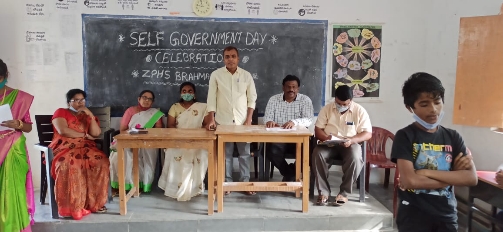 పెద్దపల్లి మండలం బ్రాహ్మణ పల్లి గ్రామంలో జెడ్ పి హెచ్ ఎస్ ఉన్నత పాఠశాలలో స్వయం పరిపాలన దినోత్సవం ఘనంగా జరుపుకున్నారు. ఈ కార్యక్రమంలో విద్యార్థు లే ఉపాధ్యాయులు అయిన వేల పాఠశాల ప్రాంతమంతా కొత్త వన్నెలు సంతరించుకొని పాఠశాల ప్రాంగణమంతా కళకళలాడింది. నిత్యం విద్యా బోధన తో ఉపాధ్యాయులు, పుస్తకాలతో కుస్తీ పట్టే విద్యార్థులు నేడు విద్యార్థులు తోటి విద్యార్థులకు విద్యను బోధించడం తో ఆనందించారు. పాఠశాల ఉపాధ్యాయుల ప్రోత్సాహంతో సంబంధిత అంశాలపై విద్యా బోధన తోటి విద్యార్థులకు బోధిస్తూ సంతోషించారు. ప్రపంచాన్ని గడగడలాడించిన కరోనా కల్లోలం తర్వాత పాఠశాలలో ఇంత పెద్ద గొప్ప కార్యక్రమము జరగడం ఇదే ప్రథమం.ఈ సందర్భంగా విద్యార్థులు మాట్లాడుతూ ఇంత గొప్ప అవకాశం కల్పించినటువంటి మా ప్రధానోపాధ్యాయునికి ఉపాధ్యాయులందరికీ శిరసు వంచి పాదాభివందనాలు చేస్తున్నామన్నారు. ఈ సందర్భంగా ముఖ్య అతిథులుగా హాజరైన మండల విద్యాధికారి సురేందర్ కుమార్ మరియు గ్రామ సర్పంచ్ మల్లేశం మాట్లాడుతూ విద్య అనేది ప్రతి మనిషికి ఒక గొప్ప ఆయుధం దాన్ని మనం ఎలా మలచుకుంటే అలా మనల్ని మన జీవితాన్ని తయారు చేస్తోందన్నారు. విద్య యొక్క గొప్పతనం గురించి ఎంత చెప్పినా తక్కువే అన్నారు ప్రతి విద్యార్థి దేశానికి రాష్ట్రానికి పుట్టి పెరిగిన ప్రాంతానికి మంచి పేరు తేవాలన్నారు. చదువులో రాణించాలంటే కృషితో పట్టుదలగా చదవాలన్నారు .విద్యార్థిని విద్యార్థులు నిత్యం వారి మెదడుకు పదును పెడుతూ కదులుతున్న విజ్ఞాన భాండాగారాలు గా తయారు కావాలన్నారు.