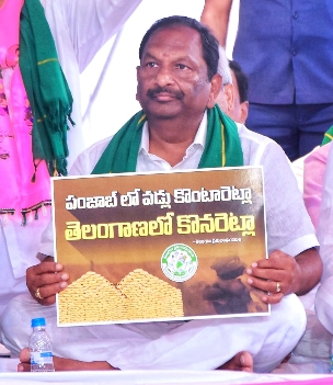హైదరాబాద్ ఇందిరాపార్క్ దగ్గర టీఆర్ఎస్ మహాధర్నాలో సీఎం కేసీఆర్ తో పాటు మంత్రి కొప్పుల ఈశ్వర్ పాల్గొన్నారు . ఈ సందర్భంగా మంత్రి ఈశ్వర్ మాట్లాడుతూ వరిధాన్యం కొనుగోలు విషయంలో కేంద్రం తన వైఖరి స్పష్టం చేయాలని డిమాండ్ చేశారు. యావత్ భారత్ దేశంలో ఉన్న రైతులoదర్నీ ముఖ్యంగా తెలంగాణలో ఉన్న రైతుల్ని కేంద్ర ప్రభుత్వంలో ఉన్న మంత్రులు రాష్ట్రంలో ఉన్న bjp ఎంపీలు bjp రాష్ట్ర అధ్యక్షుడు బండి సంజయ్ తమ మాటల గారడి తోటి అయోమయానికి గురి చేస్తున్నారన్నారు . వేసంగిలో పండించే వరి పంట రైతులు దొడ్డు వడ్లు పండిస్తారు . ఆ పండించిన దొడ్డు వడ్లు కచ్చితంగా ఉడక పెట్టాల్సిందే ఉడకబెట్టిన వడ్లు కొన్నాము అని చెబుతున్నా కేంద్ర ప్రభుత్వం ,వేసంగిలో వరి ధాన్యం కొనుగోలు చేయమని చెప్పే ధైర్యం లేదని ఆగ్రహం వ్యక్తం చేశారు . ఢిల్లీలో రైతులు శాంతియుత ధర్నాలు చేస్తుంటే కేంద్ర ప్రభుత్వ బలగాలతో వాళ్లని అనేక రకాలుగా అణిచివేయడం కాకుండా రైతులపై వాహనాలు ఎక్కించి తొక్కించిన సందర్భాలు ఉన్నాయని ,ఆవేదన వ్యక్తం చేశారు. మహాధర్నా ఈ కార్యక్రమంలో సహచర మంత్రులు ప్రజాప్రతినిధులు పాల్గొన్నారు.