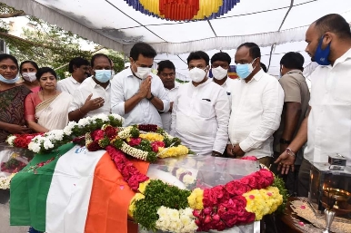 మాజీ ముఖ్యమంత్రి రోశయ్య భౌతిక కాయానికి నివాళులు అర్పిస్తున్న మంత్రులు కెటిఆర్, కొప్పుల
