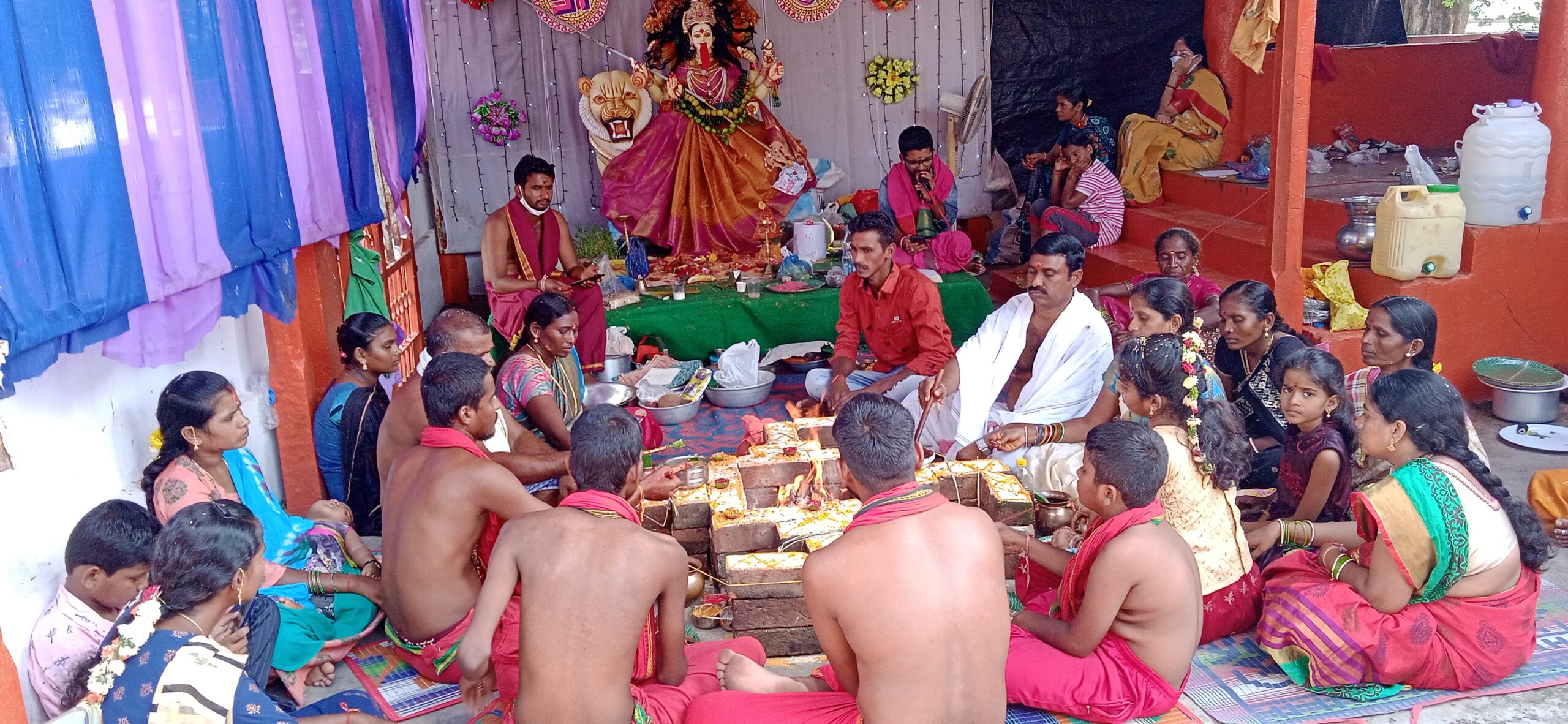 అగ్నిధార :ప్రతినిధి ‘హరి ఓం జై శ్రీ మాత్రే నమః శ్రీ మహాగౌర్యై నమః శ్రీ మహాలక్ష్మి అనుగ్రహం కార్యక్రమం లో భాగంగా అమ్మవారి నవరాత్రుల ఈరోజు నవదుర్గ కార్యక్రమాన్ని నిర్వహించుకుంటూ లక్ష్మీ దేవి హోమం దుర్గా హోమం రుద్ర హోమము ఈరోజు అమ్మవారి సన్నిధానంలో చేయడం జరిగినది అందుకుగాను గ్రామంలో పాడి పంటలు ఆయురారోగ్యాలు అష్టైశ్వర్యాలు భోగభాగ్యాల తో సుఖ సంతోషాలతో ఉండాలని