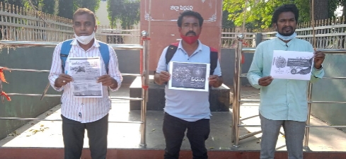 పెద్దపల్లి అగ్నిధార న్యూస్. పెద్దపల్లి పట్టణంలో శుక్రవారం రోజు స్థానిక బస్టాండ్ వద్ద గల అమరవీరుల స్తూపం వద్ద విరసం పోస్టర్ని రిలీజ్ చేశారు. ఈ సందర్భంగా ఉమ్మడి కరీంనగర్ జిల్లా విరసం కన్వీనర్ బాలసాని రాజయ్య,, మాట్లాడుతూ కేంద్ర, రాష్ట్ర ప్రభుత్వాలు అవలంబిస్తున్న ప్రజా వ్యతిరేక విధానాలను తమదైనా భావజాలంతో రచనలు, సాహిత్యం ద్వారా విరసం ప్రజల ముందుకు తీసుకెళ్తుంది.సామాన్య ప్రజలు,రైతులు, కార్మికులు, మేధావులు, హక్కులసంఘాలనాయకులపై  ప్రభుత్వ విధానాలను ప్రశ్నించ్చినందుకు అక్రమ కేసులు, UAPA వంటి కేసులు మోపి జైల్లాలో నిర్భందిస్తుంది ఇట్టి చర్యలను విప్లవ రచయితల సంఘం(విరసం) ఖండిస్తుంది.ఈసందర్బంగాఉద్యమాలే ఊపిరిగా నెల్లూరు (ఆంధ్రప్రదేశ్ )లో జరిగే విరసం 28వ మహాసభల్లో పాల్గొని విజయవంతం చేయాలనీ ప్రజలు, ప్రజాస్వామికవాదులు, మేధావులు, మహిళా, శ్రామిక వర్గలకు విరసం పిలుపునిస్తుంది అన్నారు. ఈ కార్యక్రమంలో గుమ్మడి కొమురయ్య, జిల్లా కన్వీనర్, తెలంగాణ ప్రజా ఫ్రంట్, పెద్దపల్లి . గాండ్ల మల్లేశం, జిల్లా కమిటీ సభ్యులు, తెలంగాణ ప్రజా ఫ్రంట్, పెద్దపల్లి.