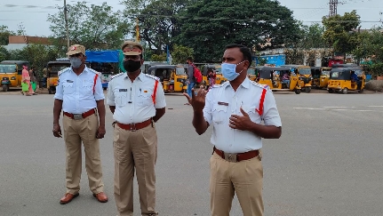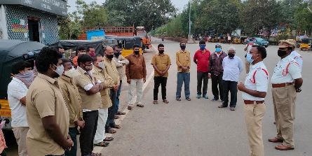 పెద్దపల్లి జిల్లా కేంద్రంలోని బస్టాండ్ వద్ద ఈరోజు ఆటో డ్రైవర్ల కు కరోనా పై అవగాహన కల్పించిన ట్రాఫిక్ సీఐ అనిల్ కుమార్ …….. .. పెద్దపల్లి అగ్నిధార న్యూస్ బుధవారం రోజున ట్రాఫిక్ సిఐ అనిల్ కుమార్ బస్టాండ్ వద్ద ఉన్నటువంటి ఆటో డ్రైవర్లకు కరోనా omicron వేరియంట్ నియమాల పైన అవగాహన పైన కల్పించారు. రోజు రోజుకు తెలంగాణ రాష్ట్రంలో, దేశంలో కేసులు పెరుగుతున్న దృశ్య ఆటో డ్రైవర్లకు అవగాహన కల్పించారు అందరూ డ్రైవర్లు మాస్కులు వాడాలని ఆటోలో ప్రయాణించే ప్రయాణికులు ఆటో డ్రైవర్లు ప్రయాణికుల నుంచి డబ్బులు తీసుకున్న తర్వాత చేతులను శానిటైజర్ చేసుకోవాలని ఆటో ఎక్కే ప్రయాణికులు కూడా మాస్కులు వాడాలని అదేవిధంగా వాహనదారులు కూడా మాస్కులు సోషల్ డిస్టెన్స్ ఉండాలి అన్నారు. తప్ప గుంపులు గుంపులుగా ఉండవద్దని అలా ఉంటే వైరస్ వ్యాప్తి చెందుతుందని అన్నారు. అదేవిధంగా ప్రజలందరూ మూడో బూస్ట్ వ్యాక్సిన్ 60 సంవత్సరాలు పైబడినవారు ఫ్రంట్ వారియర్స్ వ్యాక్సిన్ తీసుకోవాలని ప్రజలందరూ కరోన నియమాలు పాటించి వైరస్ వ్యాప్తిని దూరం చేయాలని అన్నారు. ఈ కార్యక్రమంలో ట్రాఫిక్ సిబ్బంది పాల్గొన్నారు .