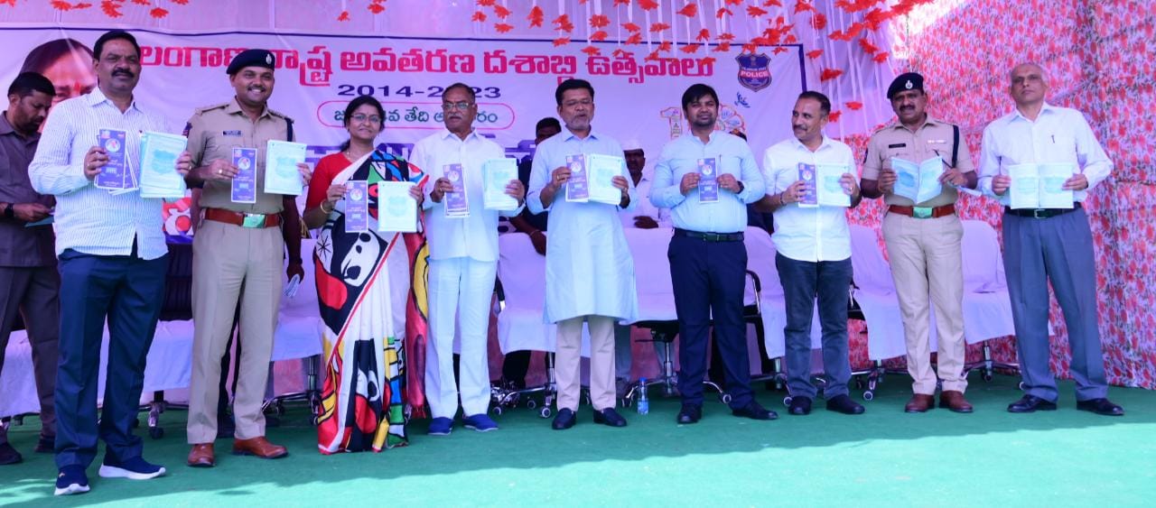 రాష్ట్ర అవతరణ దశాబ్ది వేడుకలలో భాగంగా సురక్షా దినోత్సవంలో పాల్గొన్న జెడ్పీ చైర్మన్, జిల్లా కలెక్టర్, ఎమ్మేల్యే, డి.సి.పి.