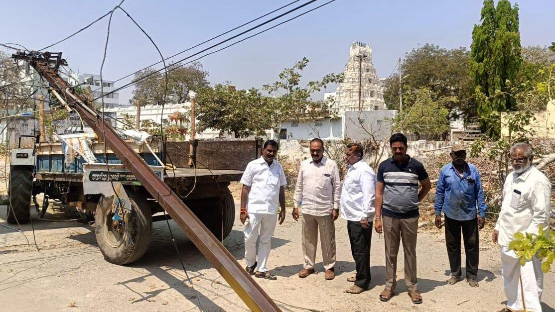 వనపర్తి జిల్లా కేంద్రంలోని 33 వ వార్డు వల్లబ్ నగర్ లో అకస్మాత్తుగా ఐరన్ విద్యుత్ స్తంభం ఒరిగింది. విషయం తెలిసిన వెంటనే సంఘటన స్థలానికి మున్సిపల్ వైస్ చైర్మన్ వాకిటి శ్రీధర్, మాజీ కౌన్సిలర్ ఉంగ్లం తిరుమల్, గులాం ఖాదర్ సందర్శించి విద్యుత్ అధికారులకు ఫోన్ ద్వారా సమాచారం అందించి ఐరన్ పోల్ ను తొలగించి దాని స్థానంలో నూతన స్తంభాన్ని ఏర్పాటు చేశారు. వార్డు ప్రజలకు విద్యుత్ అంతరాయం, ఇబ్బందులు తలెత్తకుండా చూడాలని అలాగే పట్టణంలోని వివిధ వార్డులలో మిగిలిపోయిన ఐరన్ పోల్స్ లను గుర్తించి వెంటనే సిమెంట్ పోల్స్ ని ఏర్పాటు చేసి వనపర్తి ప్రజలకు ఎలాంటి ఇబ్బందులు, ప్రమాదాలు తలెత్తకుండా చూడాలని విద్యుత్ అధికారులకు మున్సిపల్ వైస్ చైర్మన్ వాకిటి శ్రీధర్ సూచించారు.