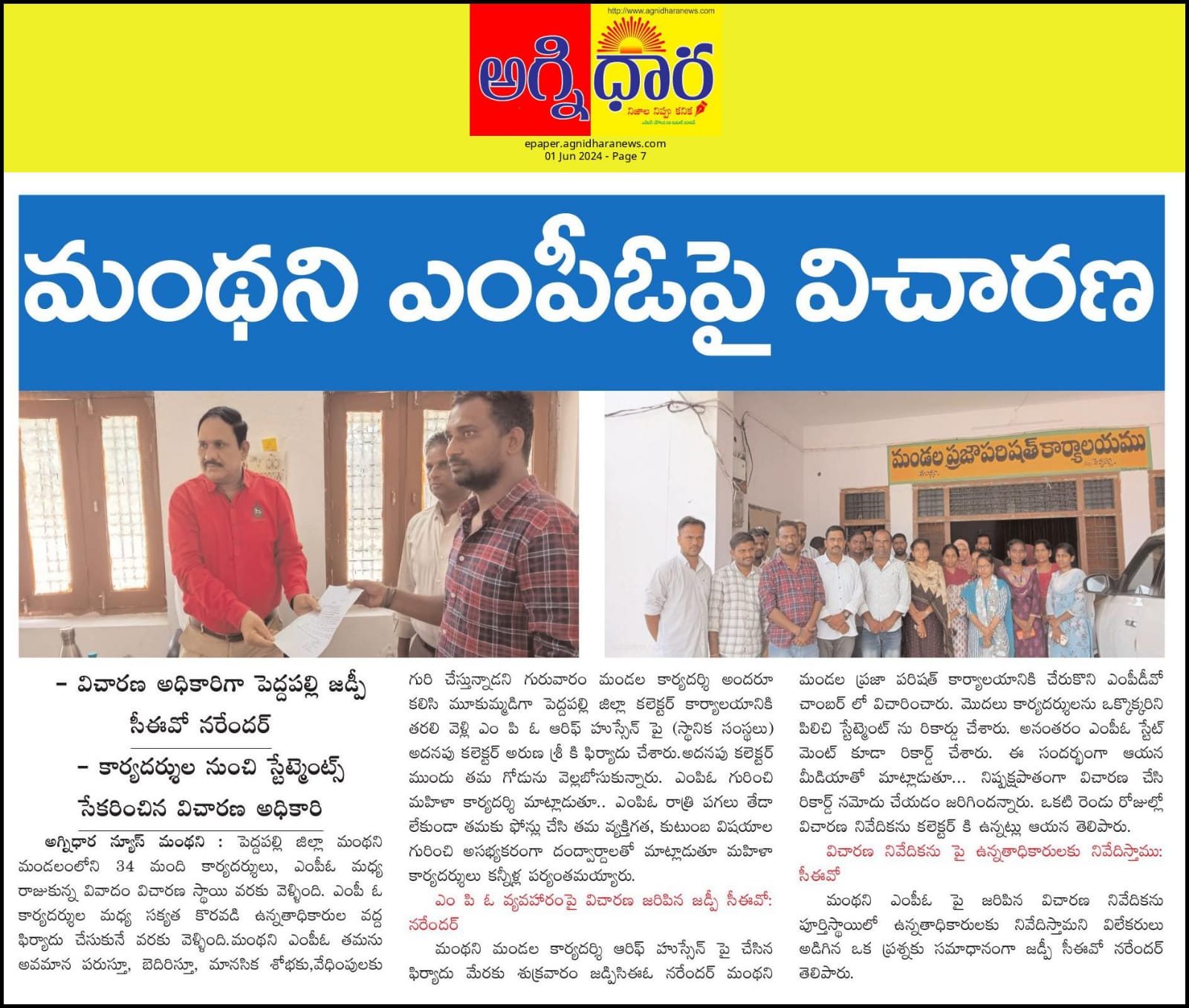 అగ్నిధారన్యూస్ ( పెద్దపల్లిజిల్లా )