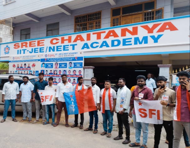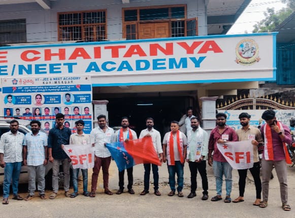 అనంతరం శ్రీచైతన్య కళాశాల యజమాన్య వైఖరిని నిరసిస్తూ కళాశాల ముందు విద్యార్థి, యువజన సంఘాల ఆధ్వర్యంలో ధర్నా నిర్వహించారు.