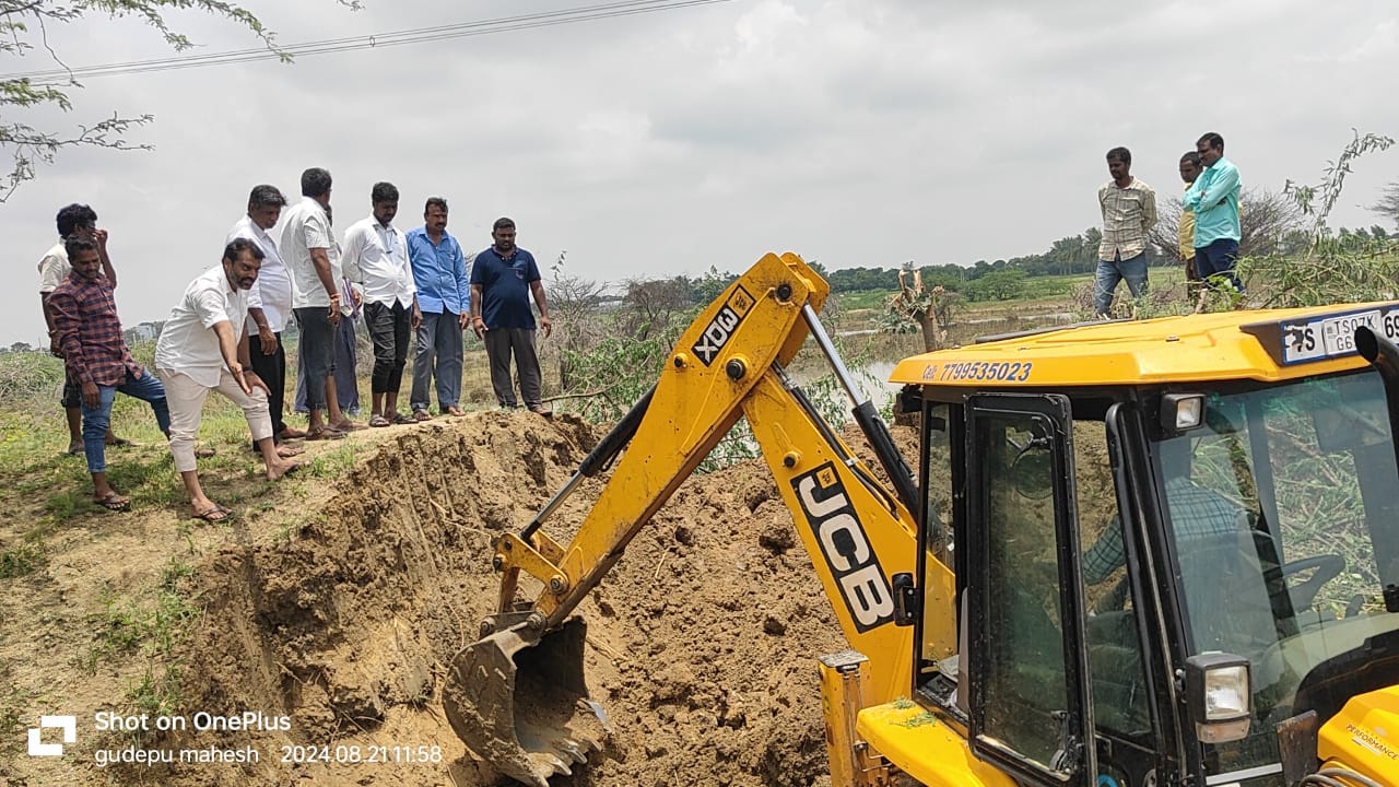 కడ్తాల్ మండల కేంద్రంలో గత రెండు రోజుల క్రితం కురిసిన భారీ వర్షానికి గ్రామపంచాయతీ పరిధిలో నిండుకుండలా ఉన్న మేడికుంటకు గండిపడటంతో భారీగా వర్షం నీరు వృధా అయ్యింది.రైతుల ద్వారా సమాచారం అందుకున్న స్థానిక సర్పంచ్ లక్ష్మి నరసింహ రెడ్డి,బీఆర్ఎస్ శ్రేణులతో కలిసి మేడికుంటను పరిశీలించి జెసిబి సహాయంతో తాత్కాలిక మరమ్మతులు చేపట్టారు. వర్షాకాలానికి ముందే గ్రామాలలో ఉన్నటువంటి చెరువులను, కుంటలను ఇరిగేషన్ అధికారులు ఎప్పటికప్పుడు పరిశీలించి భద్రతా చర్యలు చేపడితే ఇలాంటి సంఘటనలు పునరావృతం కావని తెలిపారు. ఇరిగేషన్ శాఖ ఉన్నతాధికారులకు పరిస్థితిని వివరించి వెంటనే యుద్ధ ప్రాతిపదికన మేడికుంట కట్ట పునర్నిర్మాణ చర్యలు పూర్తిస్థాయిలో చేపట్టాలని కోరారు. గ్రామాలలో ఉన్న చెరువులు కుంటలలో సమృద్ధిగా నీరు నిల్వ ఉంటేనే వ్యవసాయ బావులలో నీరు సమృద్ధిగా ఉంటుందని,గత ప్రభుత్వంలో మిషన్ కాకతీయ ద్వారా చెరువుల పూడికతీత పునరుద్ధరణ కార్యక్రమంతో భూగర్భ జలాలు పెరిగిపోయాయని తెలిపారు. జాతీయ గ్రామీణ ఉపాధి హామీ పథకం ద్వారా చెరువు కట్టలపై ఉన్న కంపచెట్ల తొలగింపు కార్యక్రమాలు కూడా చేపట్టాలని కోరారు. ఈ కార్యక్రమంలో, మాజీ మార్కెట్ కమిటీ డైరెక్టర్ లాయక్ అలీ, మాజీ వార్డు సభ్యులు గురిగళ్ళ జంగమ్మ రామచంద్రయ్య, గ్రామస్తులు గూడెపు జంగయ్య,బీఆర్ఎస్ నాయకులు సిద్ది వెంకటేష్, మూడ రవి, పురుషోత్తం ,గూడెపు మహేష్, కాలే శ్రీను ,కంబాల శ్రీకాంత్, శ్రీశైలం ,ఇరిగేషన్ శాఖ వర్క్ ఇన్స్పెక్టర్ ఎల్లయ్య,కృష్ణ, నరసింహ తదితరులు పాల్గొన్నారు.